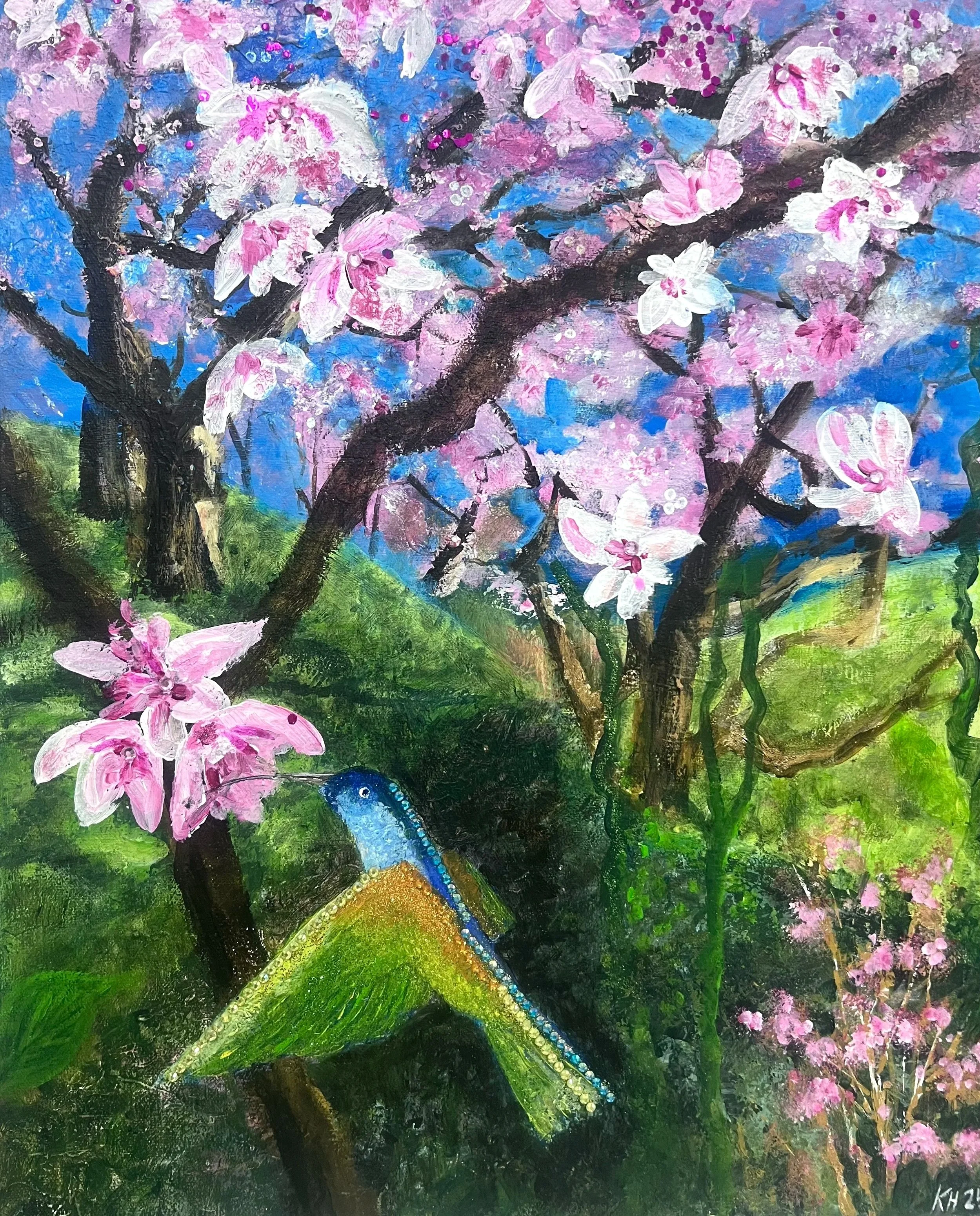 Habt ihr als Kinder auch im Apfelblütenbaum gesessen und den leisen Wind, den Duft der Blüten und das Summen der Insekten wahrgenommen? Ich in meinem Alter würde da glatt runterfallen, aber als Künstler haben wir ja die Möglichkeit, das alles zu sehen, zu hören und zu riechen, einfach während des Malens.