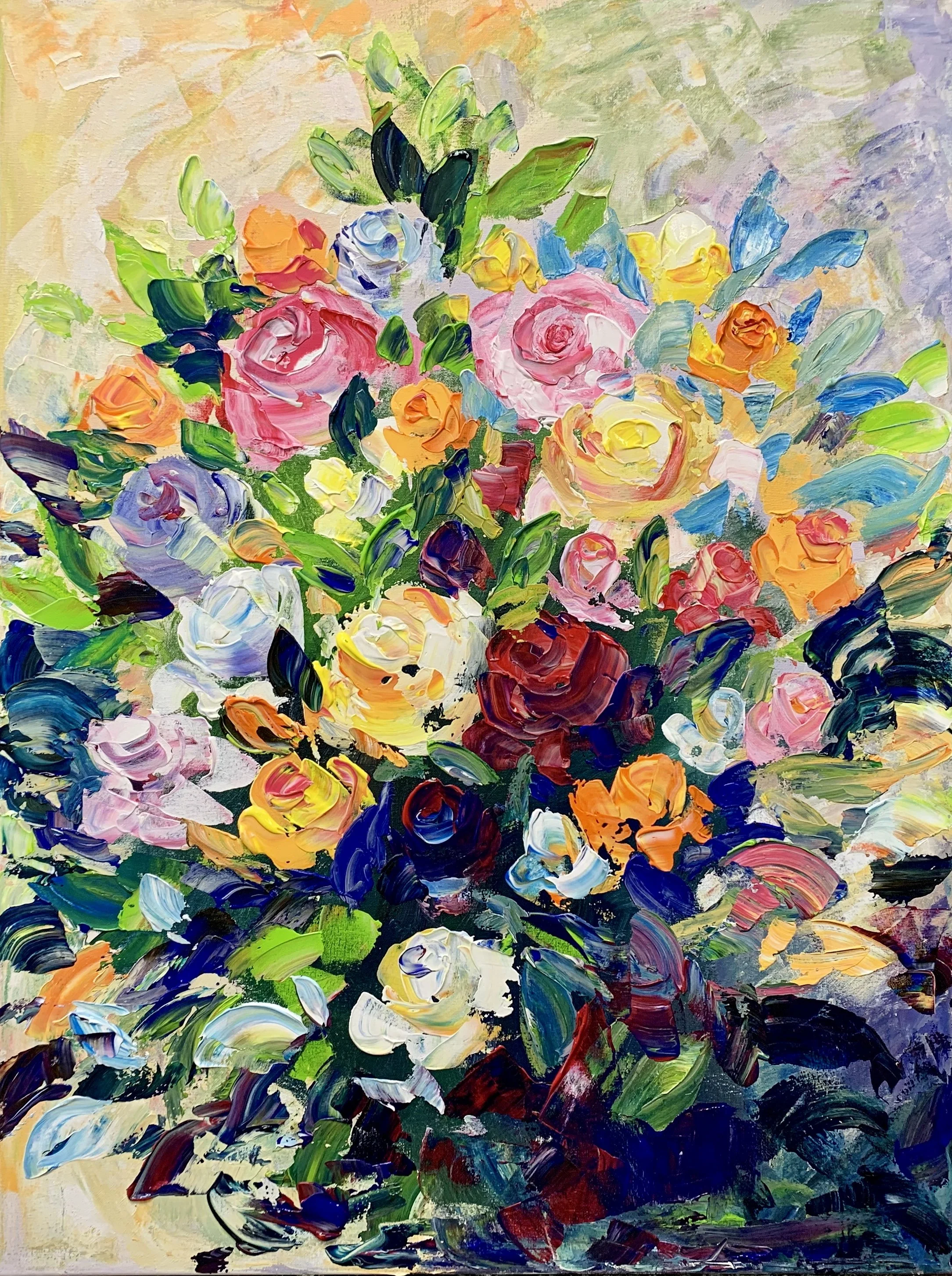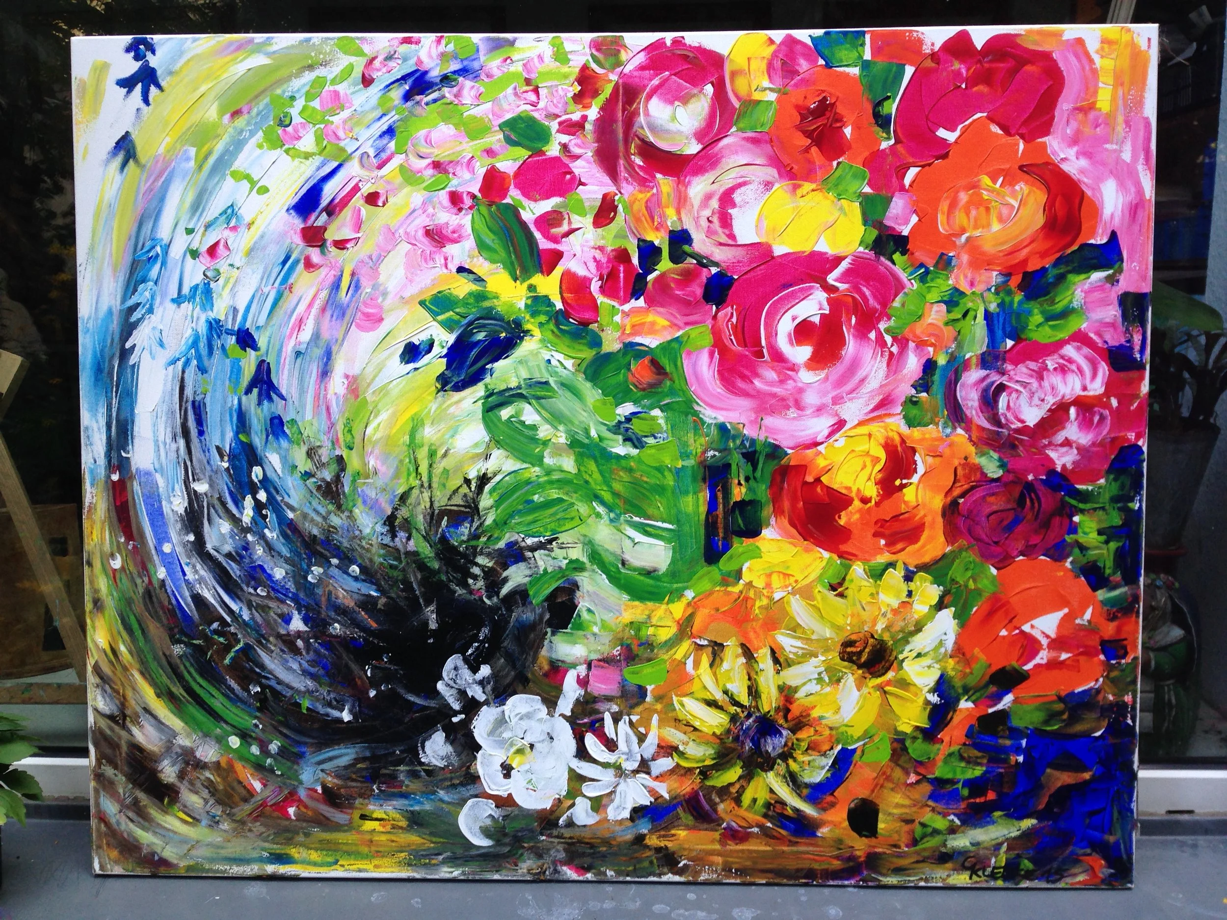Wir malen einen üppigen Blumenstrauß mit Acryl und Spachtel. Volles Leben. Wenn dieses Bild im Wohnzimmer hängt, wird die Atmosphäre lebendiger und freundlich. Wir malen auf Leinwänden 50x60cm, die ihr bei mir kaufen könnt oder ihr bringt euch welche mit.
